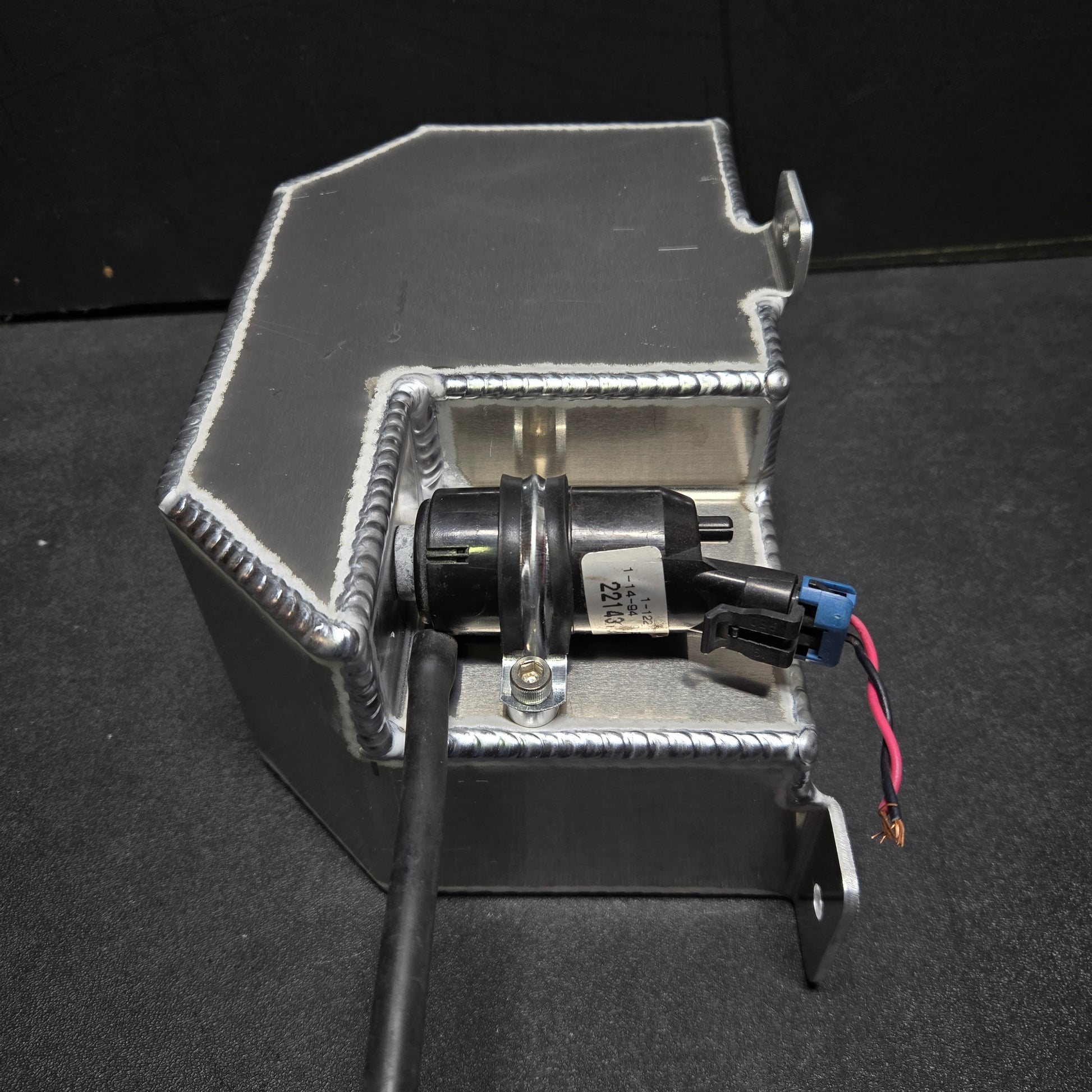 All reservoirs come with 1/4-20 blind thread bosses and a stainless-steel rubberized clamp to hold the pump securely in place. New pump grommet included.