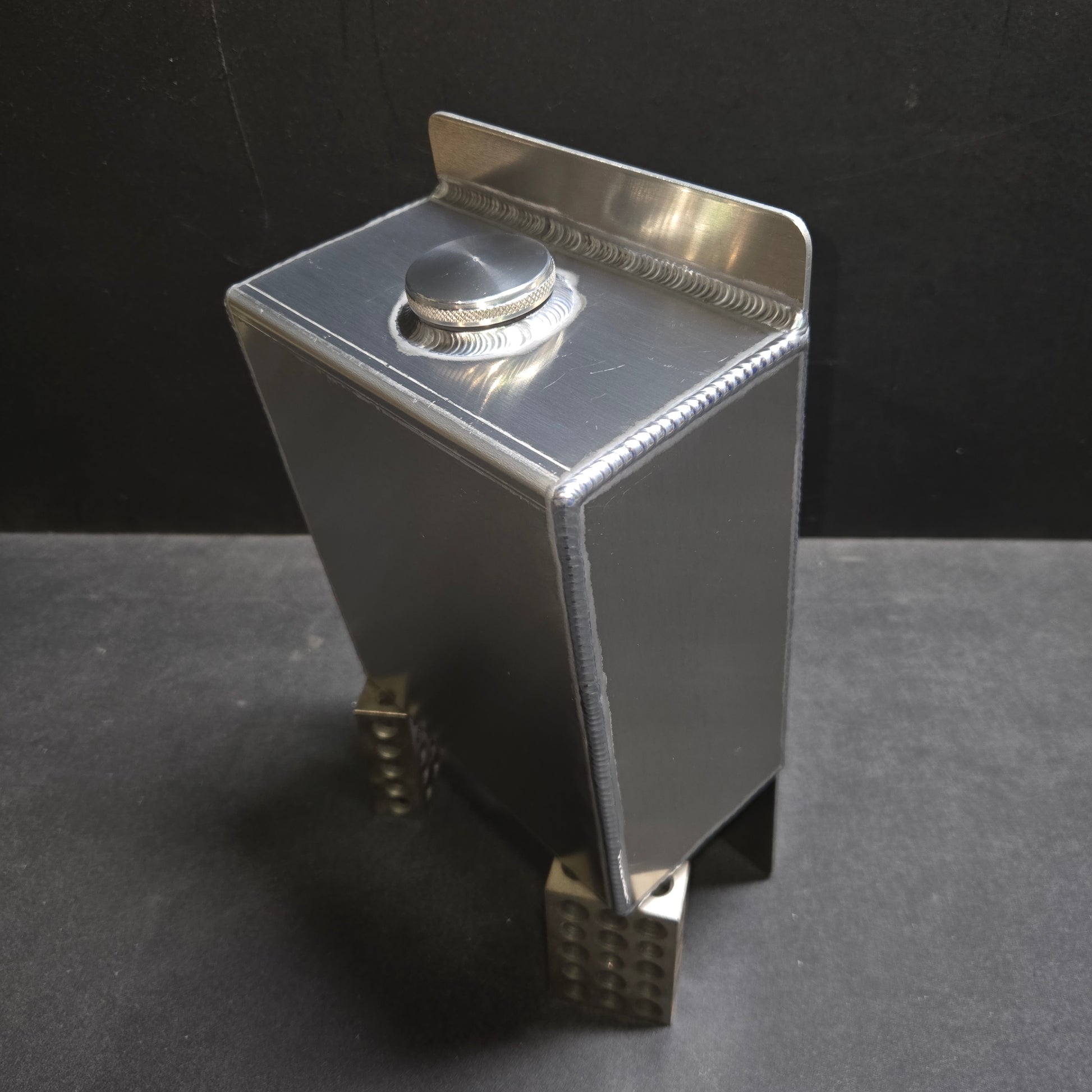 - Knurled Aluminum fill cap with built-in vent fitting