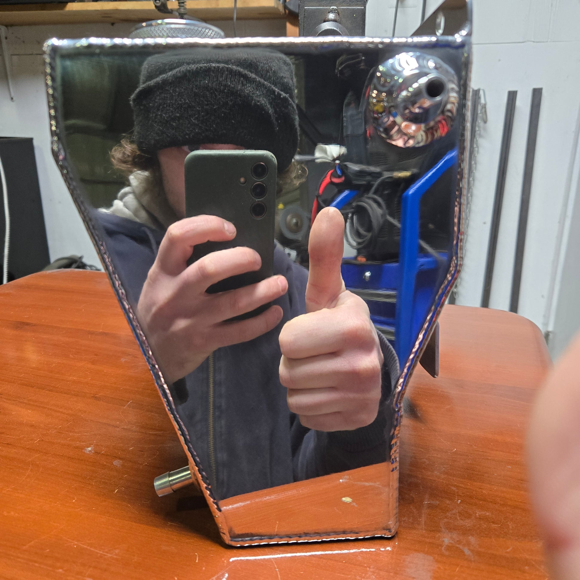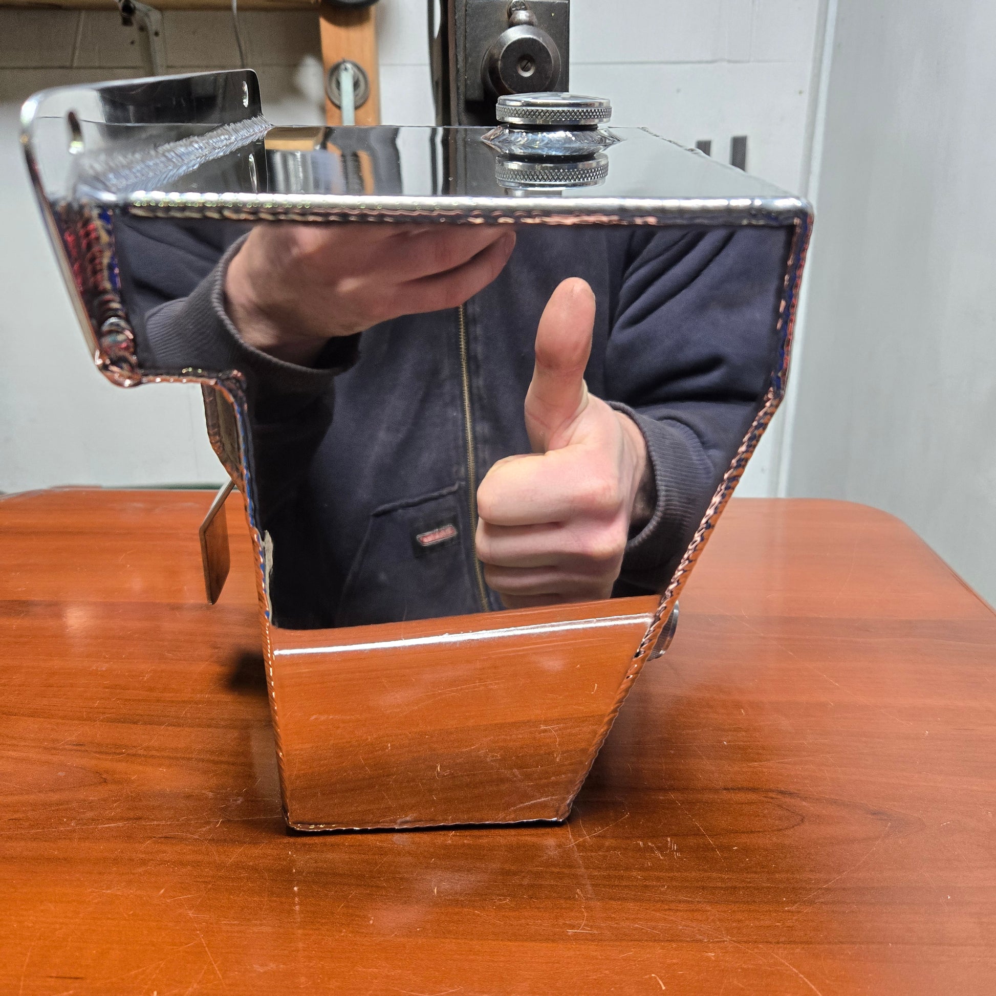 It has been pressure tested and is fully functional. 3/8" Barb fitting for the coolant connection. Sight glass included. For someone looking for a more inexpensive polished reservoir, this is perfect for you.
