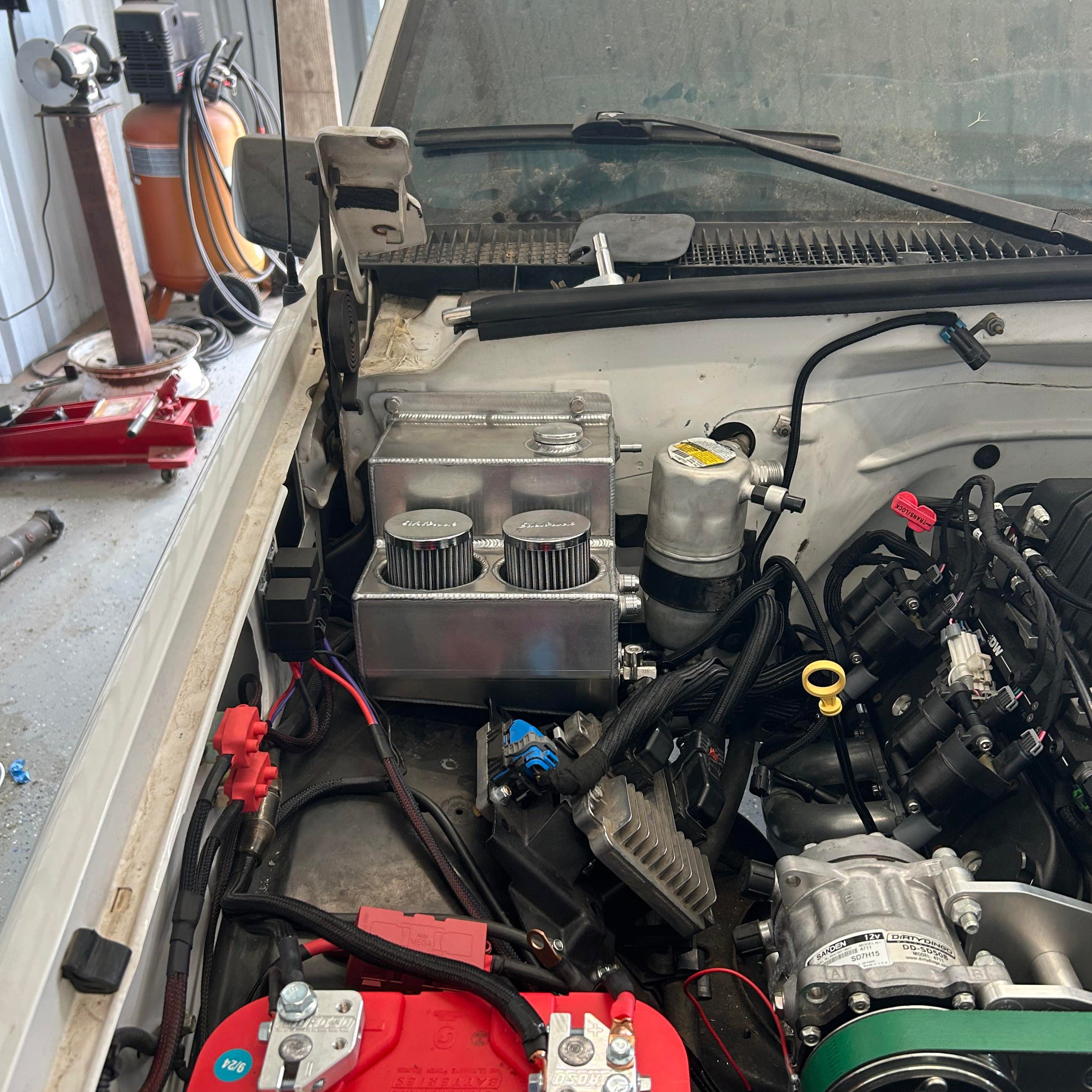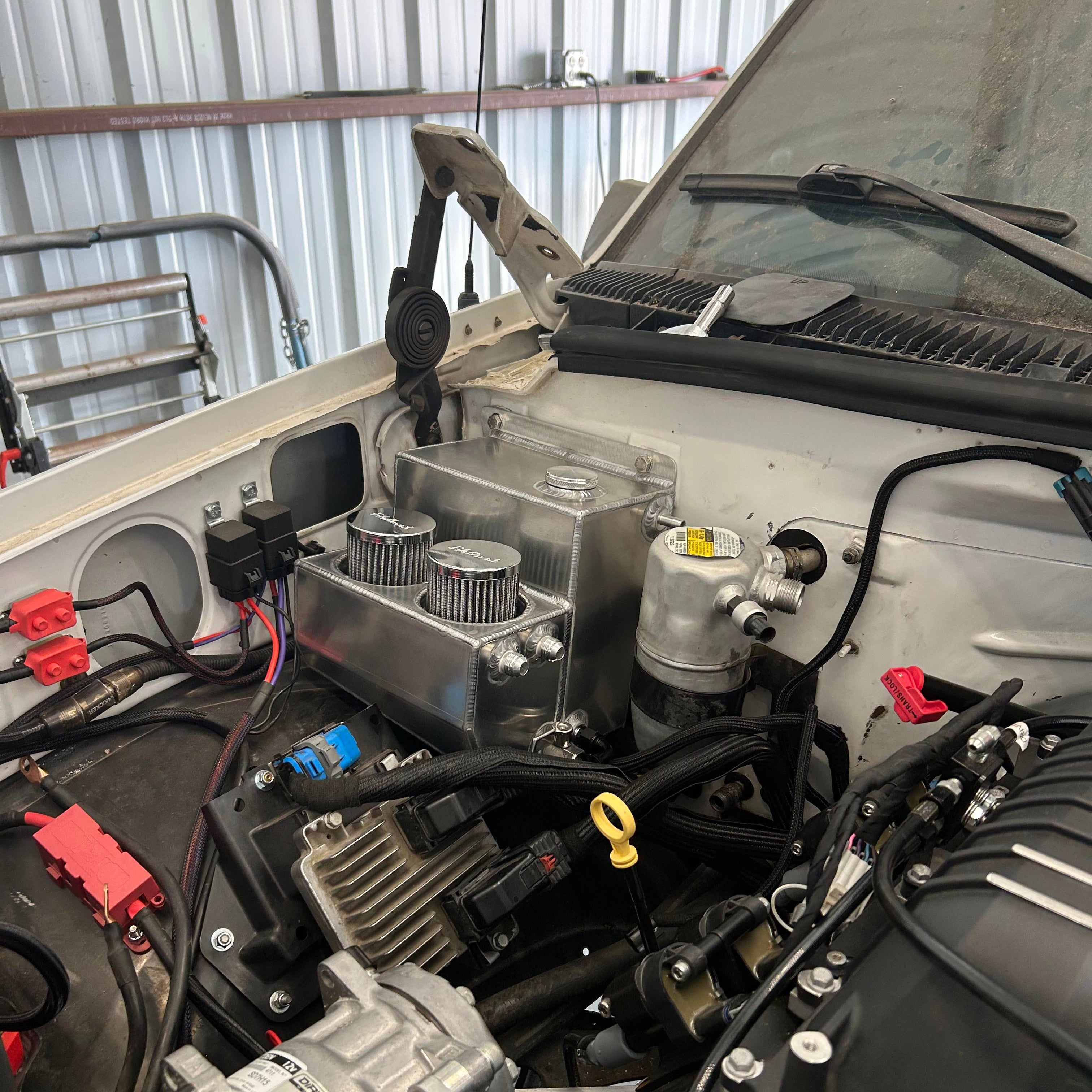 Based on our flagship 1988-1998 GMT400 Coolant Reservoir (unpressurized), this Combo Tank combines our coolant reservoir with a customizable crankcase breather filter (Catch Can), in one direct-bolt-on package. MADE IN USA
