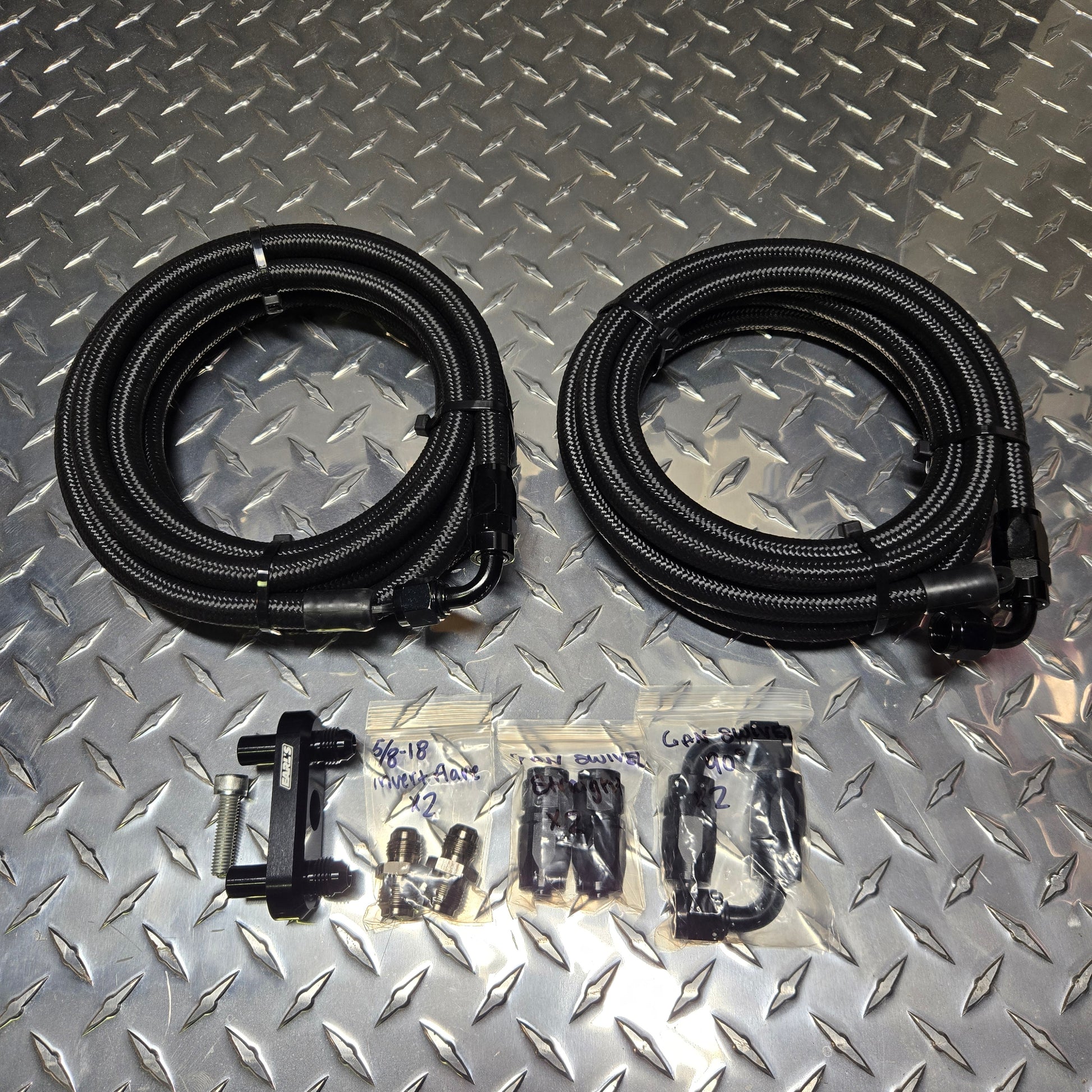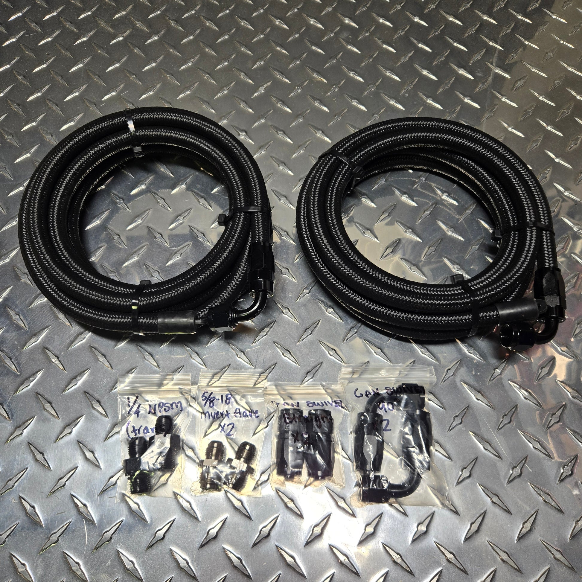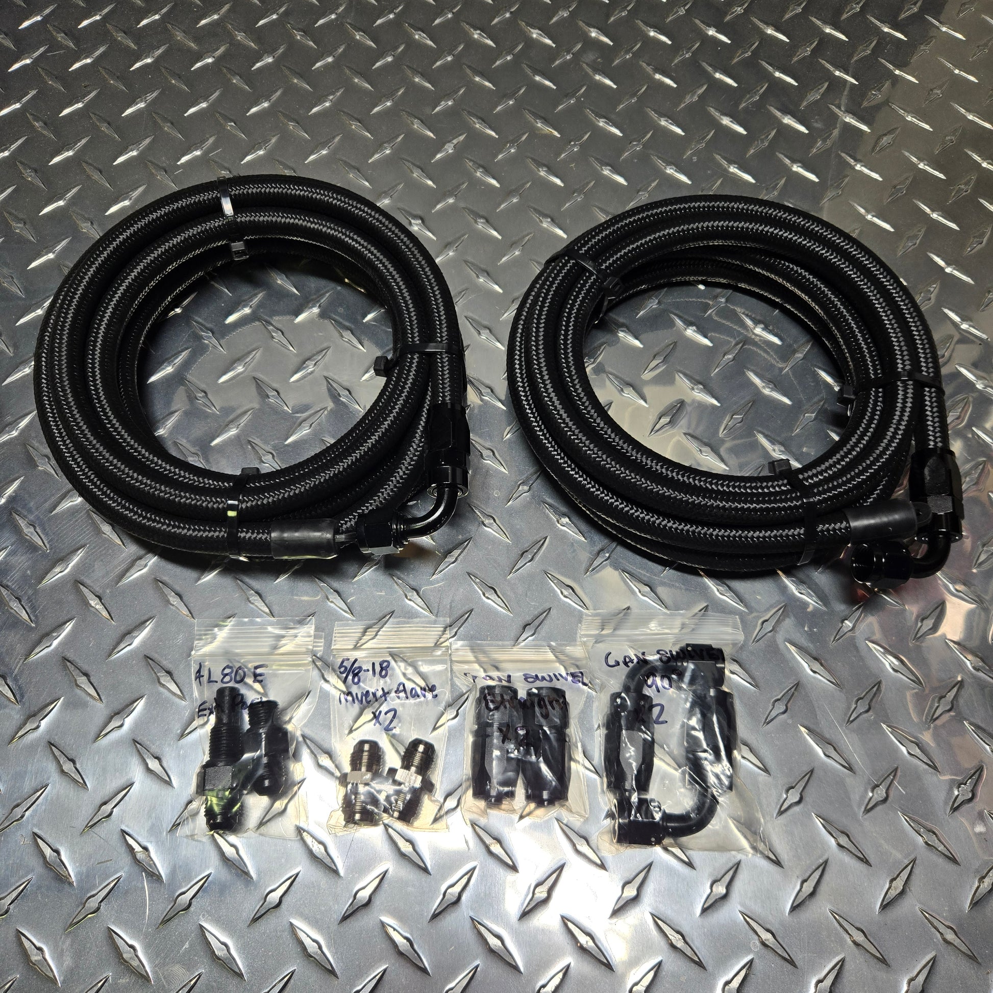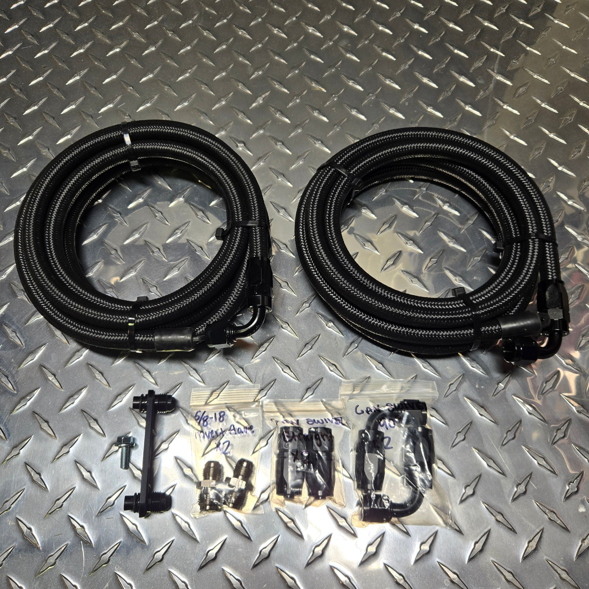 Note: This kit is designed mostly for aftermarket engine and transmission setups. The lines will come cut 10' in length with only one fitting end installed. This is so you can cut and route the lines to your specified lengths and requirements.